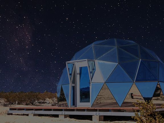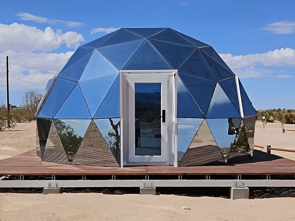 Escape to your serene 5-acre retreat in Joshua Tree, offering unobstructed vistas from sunrise to sunset on this exclusive property. Your private oasis is the perfect blend of off-grid connection and modern comfort, just minutes from local adventures. The property features a stylish main house and a separate, enchanting bubble dome for a truly unique desert experience.