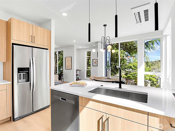 Stunning new construction in Queen Anne—just a short stroll to vibrant Fremont! This thoughtfully designed 4-bedroom, 2.5-bath home features a chef’s kitchen with slab countertops, stainless steel appliances & oak hardwood floors. Enjoy year-round comfort with energy-efficient mini-split heating and cooling. The spacious primary suite offers a walk-in closet and a luxurious tiled bath. Unwind on your private rooftop deck with sweeping views of the Cascades and Ship Canal. Convenient alley access leads to dedicated parking. Sophisticated urban living meets everyday convenience in one of Seattle’s most sought-after neighborhoods.