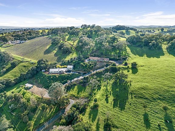 Stunning panoramic views overlooking the entire city of Napa (and of course city lights) and the eastern hills of the Napa Valley. This 11 acre property features 2 homes, but this is the only home for rent, The upper home is where the owner of the property lives. There is plenty of separation between the homes for total privacy. The architecture is a mid-century modern. The gated driveway leads up to this home at 627 Casswall, a 4300 sq ft (mostly) single story home, except for the Primary Suite which is above the 2 car attached garage, with it's total 4 bed (2 of which are en suite), 3.5 bath layout. It is being rented unfurnished, but there are some pieces of furniture that my be available to stay, such as a dining room table and chairs, an L shaped couch, etc.