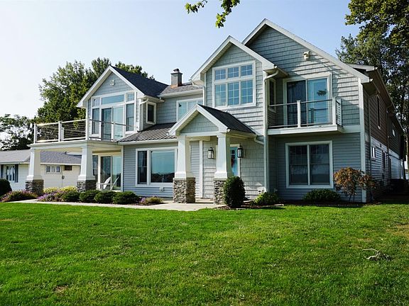 Coastal Living magazine needs to see this beauty! Magnificent views. Lake to Bay lot is .98 acres. Custom designed with character, charm, spacious and gracious feel with convenience and ease of living in every room. Wonderful outdoor space to enjoy the views and outdoors from porches, balconies and patios. Open living room features heated porcelain floors. Picture windows give you expansive view of Lake Erie and Sandusky Bay. Lake room/ family room is open to kitchen and dining area. Cooks delight kitchen. Guest bedroom and bath on the first floor. Convenient mudroom from garage and laundry. Incredible master has his and her closets. Lovely sitting area and French doors to the front/back balconies of the home. Bonus room,finished attic.Breakwall has been redone in the front. 3 car garage, workshop and bonus room. This is a rare find. Whole house Generac generator.