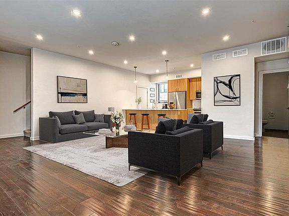 ***Fabulous downtown living in the Arts District***Modern condo living across the street from the Civic Center***Huge windows bring in lots of natural light in the spacious open living/dining/kitchen area***Wood floors in living room and bedrooms***New tile floor in the well designed contemporary kitchen with subway tile backsplash, all stainless steel appliances including refrigerator, self closing cabinet doors and drawers plus a huge walk-in pantry***Half bathroom downstairs***Head upstairs to the two large bedrooms including one with large ensuite bathroom***Enjoy the great views of the downtown Oklahoma City skyline from one of two balconies--one off the living area and a second one upstairs***Gated parking with two covered parking spaces***Convenient to all that downtown living offers including great restaurants and entertainment***Virtual staging photos for living room and kitchen***