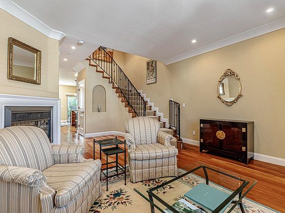 One of six exclusive townhomes set behind an automatic wrought iron gate nestled in the Rose Garden/College Park neighborhood just off The Alameda. This private and meticulously maintained small development conveys quality craftsmanship, pride of ownership and is situated in a neighborhood of single family homes. This unit is a three bedroom, 2 1/2 bathroom, two story of 1575 square feet with an attached two car tandem garage. Functions and feels like a single family home. Designed beautifully with vaulted ceilings, dramatic staircase, hardwood floors, living room fireplace, designer grade carpeting in bedroom areas and bullnose walls. Lovely well appointed kitchen with large eat-in area that flows perfectly out to the backyard/patio. Quality windows and plenty of natural light throughout this home. Upstairs is a luxurious master suite with a large walk in closet as well as a wall closet plus two additional generous bedrooms and a hall bathroom. A lovely back yard patio with perfect exposure is just the right size for entertaining while still keeping it simple and low maintenance and is appointed with beautiful plantings and trees. Enjoy central air-conditioning, abundant storage, washer/dryer. Walk to restaurants, cafes, coffee houses, Whole Foods and so much more.