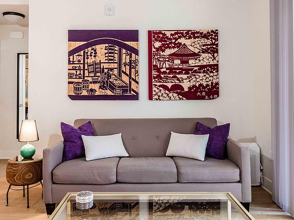 Spacious two bedroom condo in upscale community. Great coffee shop downstairs and a few minutes walk to many restaurants, shops, and the Promenade shopping mall. Across the street is also a great library for adults and children.