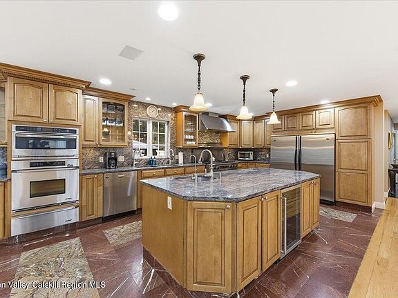 Set on four acres overlooking Green Lake, this exceptional custom-built Catskill home offers sweeping lake and seasonal mountain views, refined craftsmanship, and a thoughtful balance of openness and privacy. The residence spans over 4,100 square feet and features 4 bedrooms and 4 baths, including first- and second-floor primary suites that support flexible, multi-level living.