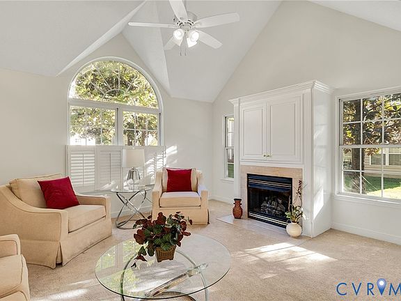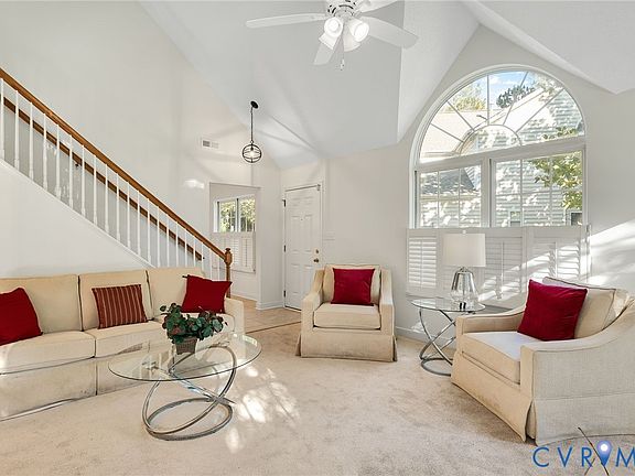 This gorgeous, move in ready end unit has been recently renovated and is ready for the most discerning buyers. This two bedroom two and a half bath condo offers an extremely open layout, with vaulted ceilings and loads of windows for natural light. Located at the end of a cul-de-sac it offers privacy not often found in attached living, while also being moments away from shopping, golf, and everything social that Midlothian has to offer. The primary suite has been updated to include a large walk in tiled shower, vaulted ceilings as well as a walk in closet. Call to schedule your private showing today.