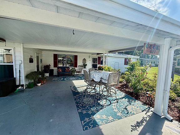 Home is located in Water Oak Country Club Estates in Lady Lake Florida an active 55 plus resort style land lease community. Charming well maintained home over looking the completely renovated Water Oak Golf Course. New roof was installed in the spring of 2025. New A/C/Heat pump replaced in the spring of 2024. New concrete driveway from carport to the street. Spacious utility shed with double doors for golf cart access. The shed has A/C and is the perfect set up for a hairdresser. Washer and dryer located in shed and convey with the home. As you enter the home, you will find a convenient desk area to help keep you organized. Open concept in the main living area's. Attractive newer stainless steel appliances convey as well. Large living room with built in shelving and panoramic windows, which provide stunning views of the golf course. Sliding glass doors lead out to the enclosed lanai which is equipped with double hung windows and has separate A/C. The view of the golf course can be enjoyed from the lanai as well. Spacious guest bedroom with a full guest bathroom, with tub/shower combo. The primary bedroom is large and the en suite bath has a beautiful soaker tub as well as a walk in shower. Bright and cheerful make this a home to be proud of! Golf cart and some furniture can be negotiated. Located close to the community restaurant and main clubhouse and amenities, as well as the main front gate to the community. Give us a call to tour this unique golf course home! Water Oak Country Club Estates is a 55+ Active Community and you will find something to do every day of the year if you so choose!! Clubs, entertainment, swimming. all kinds of sports, you can even join one of the softball teams! The Golf Course has been newly renovated and there is a brand new third pool currently under construction! Better hurry on this one!