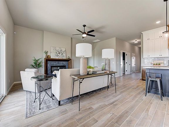 Ask about our incentives! Discover The Eden in Shawnee, a thoughtfully designed 1, 677 sq ft new construction home featuring 3 bedrooms, 2 bathrooms, a dedicated study, and a 2-car garage. With an open living, dining, and kitchen layout anchored by a cozy electric fireplace and seamless access to the covered patio, this home is perfect for both everyday living and entertaining. The private primary suite offers dual vanities and a walk-in closet, while a flexible study at the front of the home makes working from home a breeze. Blending comfort, style, and curb appeal, The Eden is ready for you to tour today and imagine your life here.