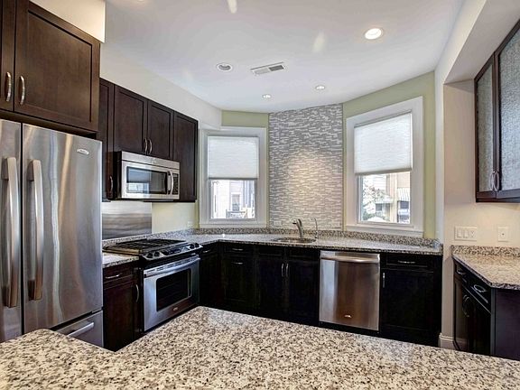 This 1400sq/ft (3 bed, 3.5 bath) rowhouse features an amazing kitchen complete with under-cabinet lighting, granite countertops, stainless steel appliances, and a gorgeous tile backsplash. Exit out the kitchen into your own fenced-in backyard. Head upstairs and you'll find two well-appointed bedroom suites, or downstairs to the fully-finished basement with its own private entrance.