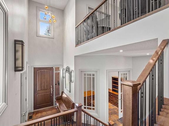 Welcome to custom built elegance in Winston Height-Mountain View. Walk in the spacious front entry and be greeted by 20’ vaulted ceilings and a grand staircase with wrought iron spindles. Continue past the entry to a private office with French doors before entering the large open concept living space. A stone-facing fireplace is the focal point of the living room along with the 10’ on-site finished coffered wood-paneled ceiling. The large kitchen features a commanding 9’ island with breakfast bar, a 6-burner Viking gas range with pot-filler, huge refrigerator-freezer combo, wine fridge, and stunning on-site finished dark stained cabinetry. A bright dining room with views of the backyard completes this space. Also on this level is a two-piece powder room. The upper floor has a huge primary retreat with separate sitting area, a stunning 5-piece bathroom with separate soaker tub, separate tiled shower with body spray package, dual sinks, and a large walk-in closet. Two other large bedrooms are also on this level along with a 4-piece main bathroom. The basement level was renovated by the current owners with over $170,000 of finishings featuring a radiant heated, polished concrete floor, large family room with custom built-ins and gas fireplace, a built-in study area with room for two, two more bedrooms, a 4-piece bathroom, and large storage room. There is also access from the basement to the garage via a separate stairway. The garage is double oversized with enough room for your vehicles and toys. The house is wired for sound and comes with a Russound system. The fully fenced backyard has a large patio, gas BBQ line, and green space. This home is built by a reputable Italian builder and the quality shows in what can be seen and what isn’t seen including double joists used to construct the sub-floor and solid core doors. Steps away from the Elks Golf Club, this home is close to schools, shopping and more and is within a short commute to the downtown core.