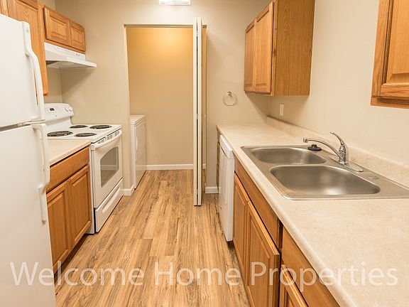This comfortable apartment is part of a small community. The kitchen looks great, and the washer and dryer are new and included in their own hideaway closet. Each apartment has its own outdoor storage unit and covered off-street parking. Water, sewer and garbage utilities are included; resident pays for electricity.