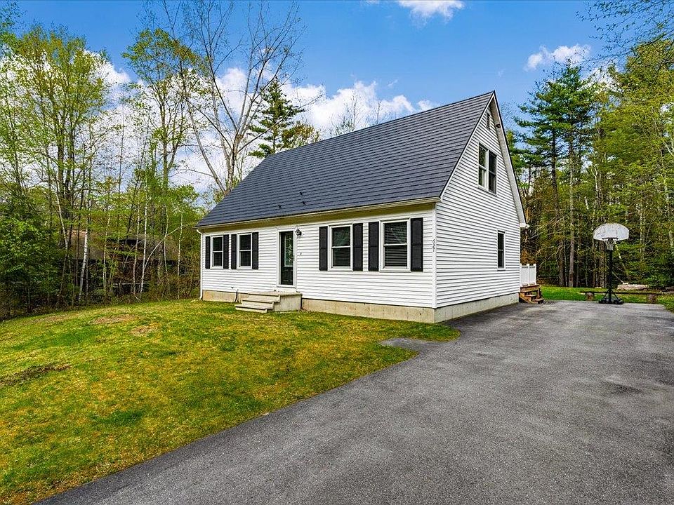 Adorable 2 bedroom Cape situated on a private 2.23 acres of land nestled in Weare, NH. Large fully appliance eat-in kitchen with tile floors and recess lighting. Spacious living room with laminate flooring, creating an inviting space for relaxation and entertainment. Two first-floor bedrooms and an updated bathroom offers comfort and convenience, with a full walk-up attic, already plumbed, awaiting your personalization for a potential third bedroom and bath or family room. Large basement with perimeter drain great for storage and extra space. More features include large generous composite deck overlooking the backyard, new metal roof with warranty to be passed on to new buyers, vinyl siding, shed and so much more.