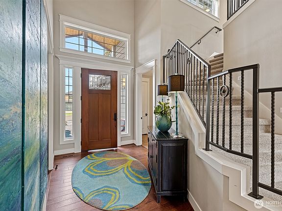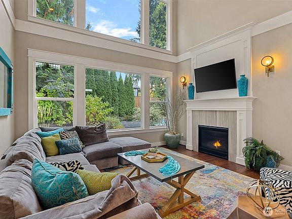 Situated on the most desirable street in town, this Josephine Parc 4-bedroom, 2.5-bath home, features a large office, hardwood floors and a bright two-story foyer. The open living area has high ceilings, abundant natural light, and a covered patio with a cozy fireplace overlooking the meticulously kept garden. The spacious kitchen offers granite countertops, a large island with seating, and a breakfast bar. The main-level primary suite includes a walk-in closet, soaking tub, dual vanities, and a private covered patio. Upstairs, three bedrooms and a bonus family room. Additional highlights: two-car garage with EV charging and built-in shelving, plus a single-car garage. Close to shops, parks, dining, swim clubs and under 20 min to Seattle.