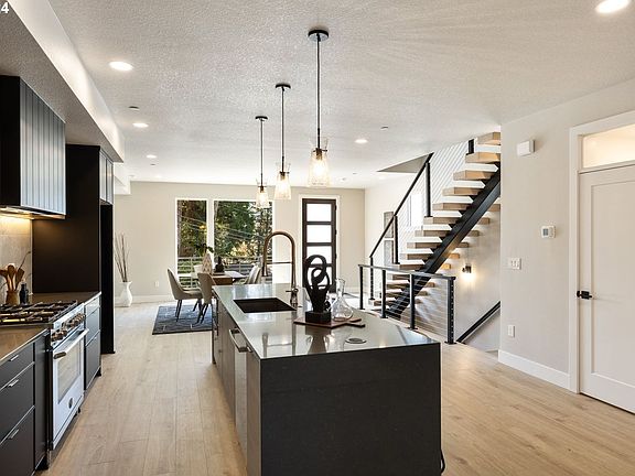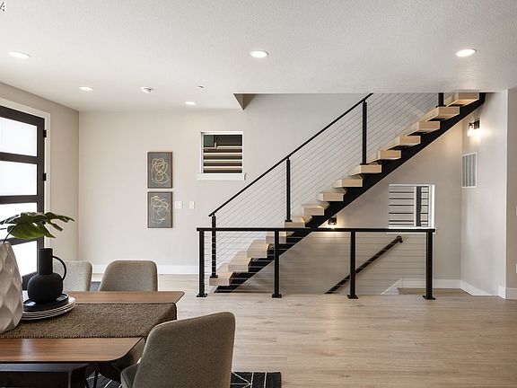Just around the corner from Lewis and Clark College, this thoughtfully designed home boasts bold contemporary architecture with a symphony of textures composed from concrete, metal and wood. Built-in planters with textured concrete form an extraordinary statement piece with metal railings and an 8 foot wood framed glass panel front door.