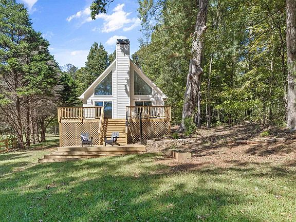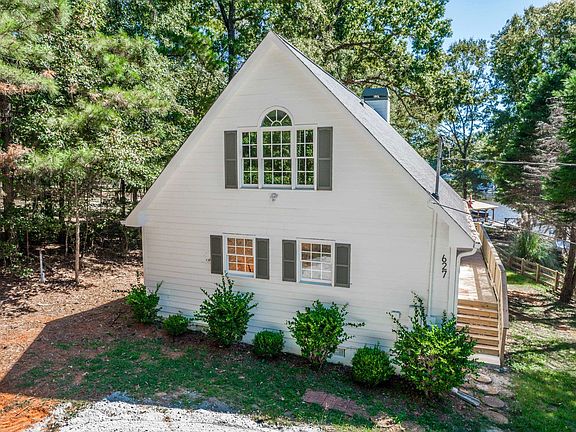 It's A-Frame perfection at Lake Sinclair! This incredible renovated modified A-Frame, located on the shores of Lake Sinclair, in the Twin Bridges area, is truly a turn-key lake house ready to be used on day one! Fully furnished and decorated as cute as can be, you can start enjoying the lake as soon as you close! This home offers 2 bedrooms on the main level and an entire primary suite upstairs that includes a private loft, large bathroom and closet. Both bathrooms have been custom renovated with designer tile, LVP flooring throughout and custom patterned carpet on the stairs going to the primary suite. All new decking, offering two levels and an outdoor shower, with gorgeous views of the lake! It is peaceful and offers so much serenity...exactly what you are looking for in a Lake House! The location is awesome, located right by the Twin Bridges Landing, marina, boat ramp and gas station, you will never need to worry about essentials. Situated on the part of Lake Sinclair that is closest to Atlanta, it is an easy drive to I-20 straight down 441. Or if you are looking to go into town, it's an easy drive into Milledgeville for dining and shopping. This beautiful lake house has it all!