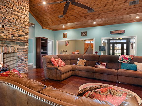 Country Living!! This 3600 square foot heated, 5400 square foot home is the definition of southern living. The home boasts three large bedrooms, two full baths, a half bath, and a bonus room that could easily accommodate a fourth bedroom. The large living room is a perfect place to relax by the double sided brick fireplace. For anyone who enjoys a large spacious kitchen, this one is equipped to please with all stainless steel appliances and granite countertops. Walking out of the home is almost as good as walking inside because of the gorgeous 48 acres that comes with the property. Sit in the covered patio area and look out across a 2+/- acre pond or move to the front of the home and look at roughly 17+/- of unimproved pastureland. This is not one you want to miss folks!