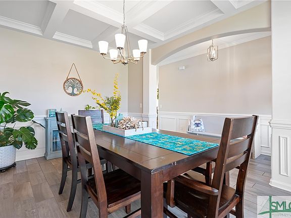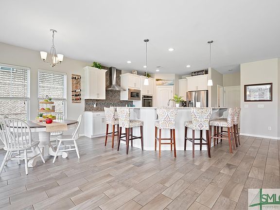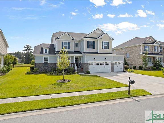 A short commute home to your chef's kitchen, close to a menu of dining and shopping options. Views of Lake! If living in a prime gated neighborhood sounds appealing, then put this opportunity at the top of your Pooler tour list. This appealing 5-bedroom, 4.5-bathroom beauty is a perfect example of elegant Traditional style. The property is within a pedestrian range of shopping and dining options and schools. Within, you'll find an impressive entryway, wide plank tile throughout, an open layout, natural light and stylish fixtures, neutral decor, notable ceiling styles, and a gas fireplace in the living room. The well-appointed main-floor primary bedroom includes a walk-in closet, a linen closet, and a private bath with a separate tub and shower. The other four bedrooms, situated above the ground floor for privacy, are rich with ample wardrobe storage. Up & downstairs laundry. Attached three-car garage. Exteriors include a pavers patio and breezy front and back porches.
