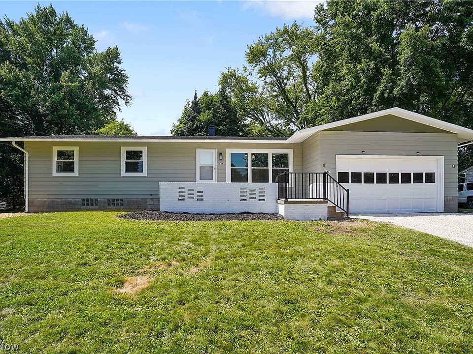 Welcome to this charming ranch-style home nestled in Kent, Ohio, offering a blend of modern updates and cozy comfort. This darling residence features three spacious bedrooms and two beautifully renovated bathrooms. As you step inside, you are greeted by an inviting atmosphere with an open layout that seamlessly connects the living room, dining area, and kitchen. The living room is bathed in natural light, creating a warm and welcoming home. The kitchen is a focal point of the home, boasting white shaker cabinets, granite counter tops, and stainless steel appliance. Each of the three bedrooms offers its own unique charm, featuring large windows that provide plenty of natural light. The many updates throughout include, new roof, windows including sliding back door, back deck and concrete on front deck. Fresh landscaping, new storm doors, new garage door opener, new flooring throughout the house including an added living space in the basement. Updated all lighting, outlets and switches throughout, added new lighting in the bedrooms, living room and kitchen. Updated bathrooms with new vanities and shower hardware. Updated all the door hardware throughout. Whether you're starting a family, downsizing, or seeking a peaceful retreat, this updated ranch home offers a blend of comfort, style, and practicality in a desirable location.