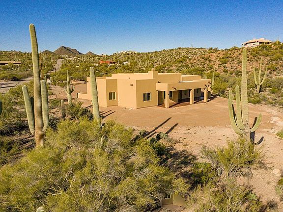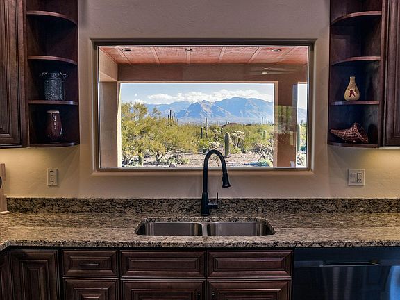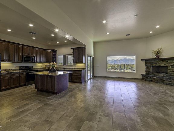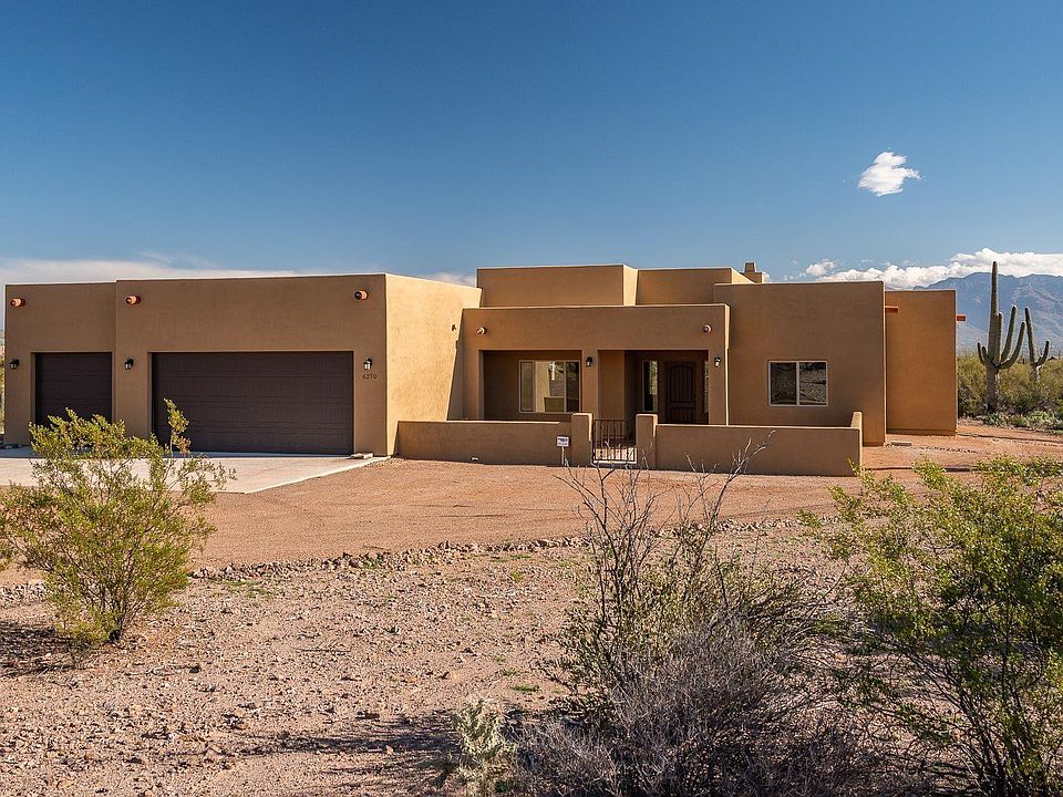 This custom home which sits on 4.33 acres of LUSH desert landscape and picturesque mountain viewsfrom every window is for sale by owner.The open floor plan concept with 12' high vaulted ceilings isstunning! Custom mocha cabinets with 3cm granite counter tops, large porcelain tile flooring, black SSSamsung appliance pkg, large island with plenty of cabinet storage, mocha stained alder doorsthroughout! Front gated courtyard with covered entrance, extended back patio with stained concrete,1000 sf 4 car garage with 8' high custom doors, RV parking, only 8 minutes from I-10. This home wasappraised at $610K in November of 2018 and is expected to appraise for over $620K with upswing inhome values. 2-10 Home Buyers Warranty available.