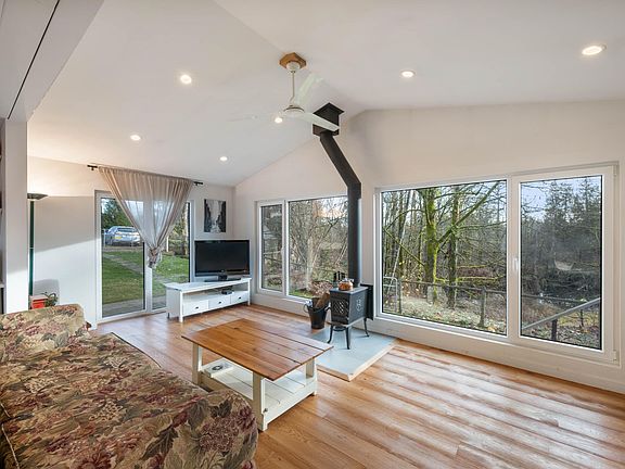 Dreaming of a hobby farm lifestyle? This uniquely renovated home on 1.85 acres puts that dream on the table. Step inside to a bright, modern 2-bed/2-bath layout flooded with natural light from oversized European-style windows and doors. Fully renovated in 2016, the home features a new roof, refreshed kitchen and baths, updated flooring, a newer septic field and tanks, and a brand-new Waterwell system. The kitchen delivers serious country-chic credentials with a Belfast sink, double oven, and a generous island built for gathering. The primary suite offers a walk-in closet and a spa-inspired ensuite complete with a clawfoot tub. Every room—and the deck—captures sweeping views of the acreage. Outside, two barns, a shed, a greenhouse, and even your own private pond round out the offering.