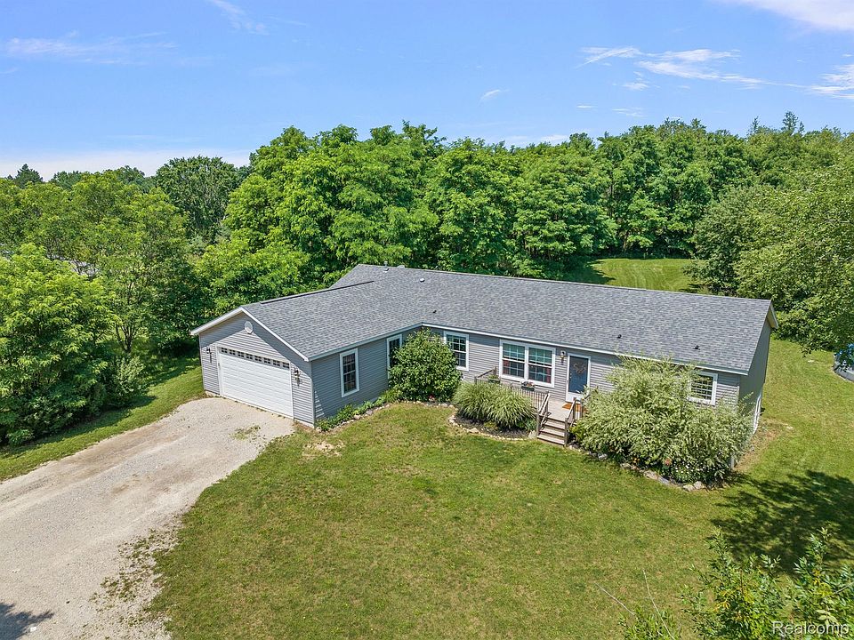 Welcome to this charming ranch nestled on a spacious 2.42-acre lot. This well-maintained home built in 2017 features three comfortable bedrooms and two updated bathrooms and an attached 2.5 car garage. The daylight basement features Superior walls, an additional non conforming 4th bedroom and is plumbed for a bathroom. The open-concept design creates a seamless flow between the two living areas, open kitchen, and cozy dining area, perfect for entertaining or relaxing. Outside, the expansive yard offers plenty of opportunities for outdoor activities featuring an above ground pool, firepit, and back deck built in 2021. Experience a true up north getaway without the need to travel far.