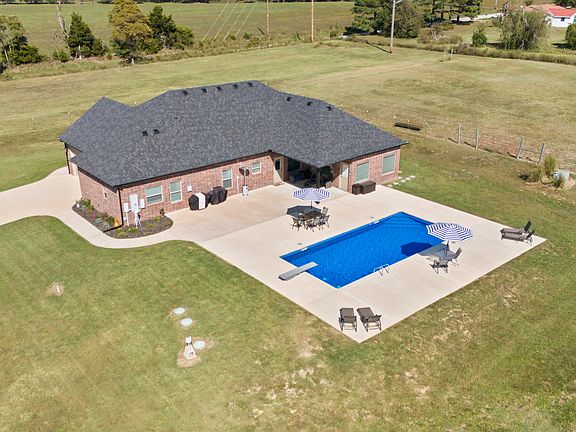 This well-maintained 4-bedroom, 3-bath all-brick home offers the perfect blend of space & comfort. Featuring a split floor plan, this home includes two living areas, perfect for entertaining or relaxing with family. You'll love the open-concept kitchen and living area, enhanced by 10-foot ceilings that create a bright, airy feel throughout. Recent upgrades include a new roof & gutters giving you low-maintenance living. Step outside to your 16 x 36 insulated liner pool with 9.5-ft deep end and diving board ideal for year-round enjoyment! The home sits on just over 2.3 acres, offering plenty of room to grow, roam, or graze while still being minutes from town. Plenty of room for a shop! Owner/Agent