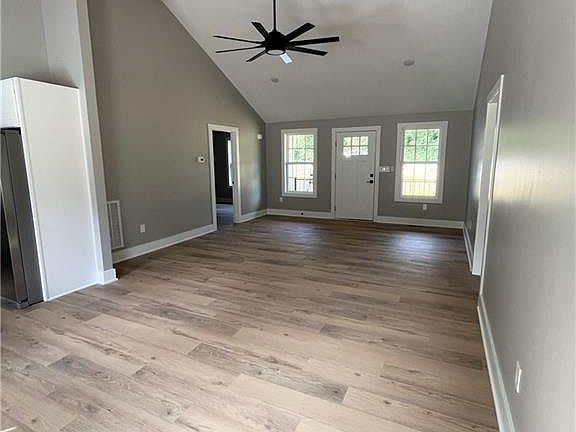 This new home offers 3BR/2BA with a split bedroom plan with spacious bedrooms. Kitchen is on the back of the home that is open to the breakfast area with beautiful cabinets, quartz counter tops and subway tile backsplash. Off the breakfast area is a nice deck to enjoy cookouts and family gatherings. Vaulted ceiling, led recessed lighting, wood color cabinets, stainless appliances including refrigerator and Samsung front load washer and dryer . Close to the Country Club, restaurants, shopping and conveniently located to I85. Don't miss this great new home at a great price! Agent is related to seller.