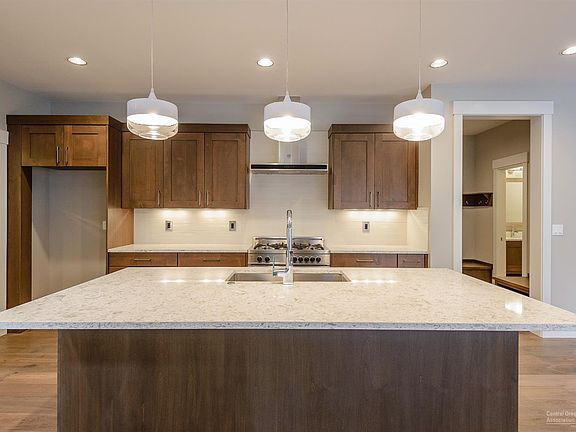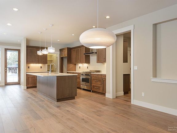 Prairie style home with contemporary features in NW Bend neighborhood. Spacious great room with abundant natural light, fireplace & custom built-ins. Hardwood floors throughout main living area. Kitchen featuring slab quartz counters, large island, walk-in pantry, commercial style range & hood. Covered dining patio. Master suite on main floor. Master bath with large tile shower & floor. Loft, bonus room, 2 bedrooms & full bath upstairs. Laundry with built-ins, abundant storage & double car garage.