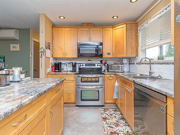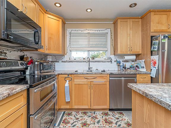 Welcome to this very well maintained 4-bedroom plus den, 2-bathroom home with a 1-bedroom in-law suite—perfect for extended family or added income potential. Sitting on a fully fenced .19-acre lot, this property offers plenty of space for kids, pets, and outdoor entertaining. The main level features a newer kitchen with modern finishes, updated bathrooms, and an airy bright living area. The home includes a heat pump ( in suite too) and a cozy wood stove insert for those cooler evenings. Step outside onto the huge deck ideal for gatherings or simply relaxing in the sunshine. RV parking, space for up to four vehicles, and a fully fenced and landscaped yard , this home combines comfort, practicality, and privacy. Located close to shopping, schools, and recreation, this well-cared-for property truly offers the perfect balance of convenience and lifestyle. 200 amp service, located across from Evans Park and close to 3 schools, soccer and baseball fields. The Commons Mall is nearby as well.