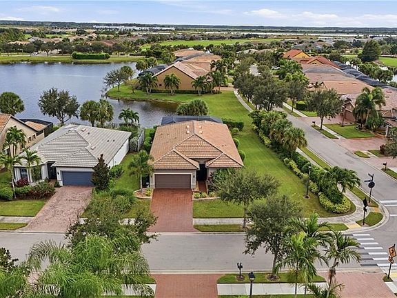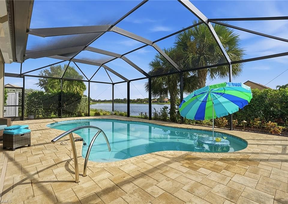 Dreaming of resort-style living in paradise? Look no further. This exquisite residence, nestled within the vibrant 55+ Del Webb community of Naples, is a true masterpiece of luxury and leisure. Step into a world where everyday life feels like an endless vacation. Del Webb offers a lifestyle of unparalleled amenities: indulge in gourmet dining, refine your swing on championship golf courses, play tennis, or invigorate your senses at the state-of-the-art fitness center. The adventure never ends. The home itself is a vision of perfection, a meticulously maintained, move-in-ready sanctuary that surpasses new construction. Soaring ceilings accentuate an atmosphere of comfort and light. The bright, airy gourmet kitchen is a chef's delight, showcasing stunning quartz countertops, a magnificent oversized island, and upgraded cabinetry throughout. This open-concept living space is an entertainer's dream, flowing seamlessly into the breathtaking southern exposure lanai. This is the epitome of Florida living. A massive outdoor kitchen, featuring built-in grill and hood, awaits your culinary artistry. Slip into the sparkling pool, relax at the built-in table, and gaze upon the serene lake from your super private, oversized corner lot. The practicalities are just as impressive: accordion and remote hurricane shutters provide peace of mind. The master suite offers a luxurious retreat with an oversized walk-in shower and closet. An expansive garage with epoxy floors accommodates two cars and your golf cart. This house doesn't just offer luxury; it offers a lifestyle. It has it all, without the extra work. Your paradise is waiting.