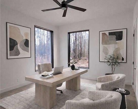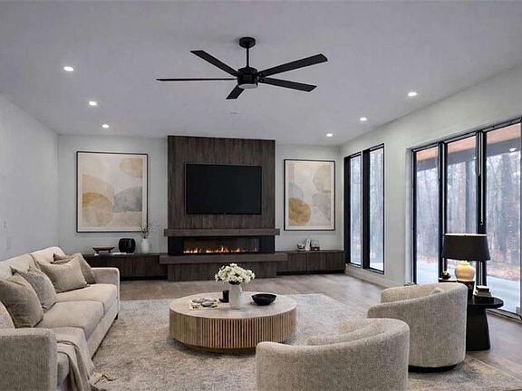 Introducing a striking contemporary new construction to South Fulton, GA. Set on approximately 1.5 acres with a long private driveway and two car garage. This 4 bedroom, 3 bathroom home blends clean lines, thoughtful design, and high end finishes throughout. A dramatic two story foyer welcomes you inside, where the main level offers a bedroom and full bath, ideal for guests or a home office, plus a dedicated dining space. The chef-level kitchen is designed to impress with an eight-burner gas range, oversized island, wet bar, and a wraparound butler's pantry, flowing effortlessly to the rear deck for easy entertaining. Upstairs, you'll find two additional bedrooms and an oversized primary suite featuring a private fireplace, spa-inspired bath with a soaking tub, large walk-in shower, and an expansive closet. The show stopping rooftop patio deck-planned to include a private putt-putt green-offers a one of a kind lifestyle feature, with a nearby golf course just about a mile away. Home currently under construction.