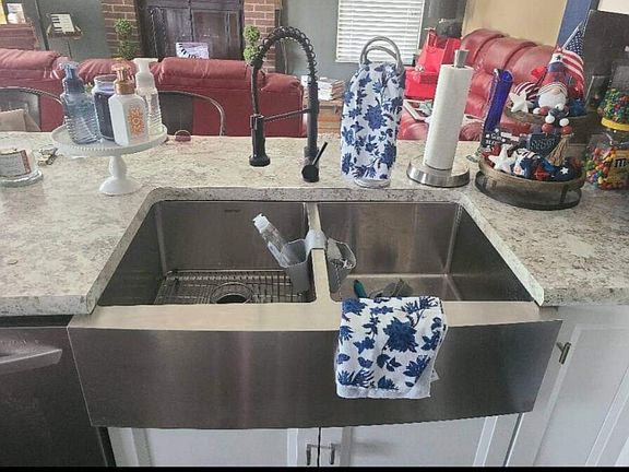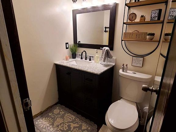 New Kitchen in 2021 includes white cabinets, gray laminate marbled pattern counter-tops, bar w stools, stainless steel farm house sink, stainless appliances electric stove & French door refrigerator with lower freezer drawer. New Windows & front door w storm door 2022, NEW 6 foot privacy Fence w 2 gates. Front Brick patio, Fenced backyard, Updated full bath, Open Vaulted Great room w Wood burning brick fireplace. Ready to be your new home!