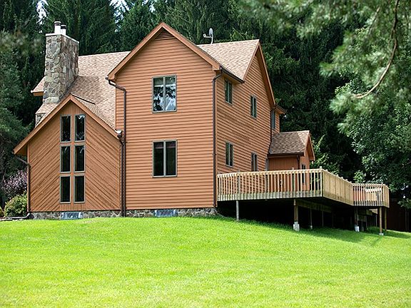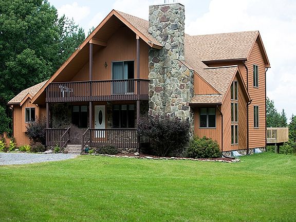 Better Homes & Gardens feature Design Custom Built A-Frame/Chalet on 33.7 acres. Home Features 2story Great Room w/floor to ceiling windows & fireplace, Loft, Beautiful spacious kitchen, formal dining room, Master Bedroom Suite, 3 decks, Finished Family room in basement w/wood burning stove. Private, Tranquil surroundings w/Gorgeous landscaping, woods, Hiking, hunting, horses or just enjoy the breathtaking views & wildlife from any room of the house, 3 decks or hot tub. Pride in home ownership shows