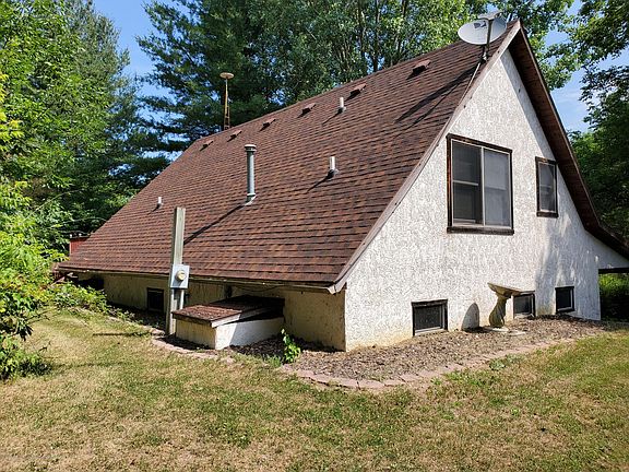 Great Fixer upper opportunity! The sump pump failed while seller was away. Main lower level flooded and will need complete replacement of flooring, drywall, and more. Mold remediation maybe required. The main lower level is the primary living space with kitchen, living room, laundry, full bath 2 bedrooms, utility room. Roof 2017, Water Heater 2018,. Septic Tank pumped in 2019. Please make sure your lender will finance this home as it is sold as is and will need completion. 24x32 pole barn. Large Pond with party Pavillion next to it.