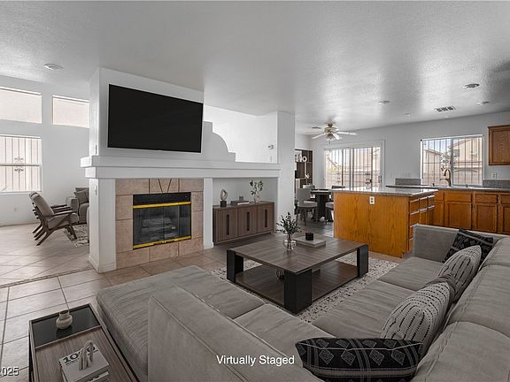 Don't miss this great opportunity to begin building wealth through real estate ownership. Ready for a large family, this huge five bedroom, den, three bath home has new luxury vinyl plank flooring, upstairs and tile down, and fresh paint. The well appointed kitchen with granite countertops, center island, and stainless steel appliances flows seamlessly into the huge family room with a cozy fireplace. You can't find a better location, just walking distance from Lewis Family Park and Goldfarb Elementary, and Las Vegas High School.