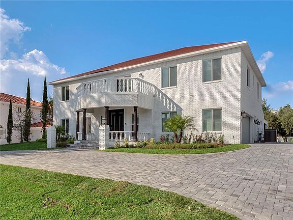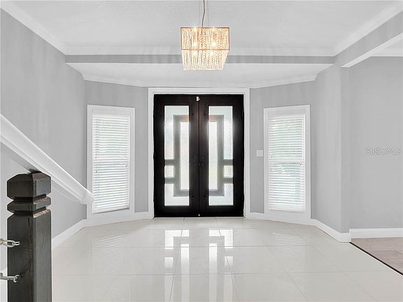 One or more photo(s) has been virtually staged. Stylish modern elegance combined with exquisite attention to detail can be found in this stunning 5 bedroom, 4 bath home in the Bay Hill Community. You are greeted by the oversized circular paver driveway which welcomes you through the custom steel front entry doors where you will immediately be impressed with the gorgeous light fixtures, crown molding, and contemporary stair railing with a custom mosaic backsplash on the stairs. The open floor plan includes a formal living room with a fireplace surrounded by a custom wood accent wall and a formal dining room. If you don't need another living area, the spacious family room could make the perfect game room. The pristine gourmet kitchen boasts quartz countertops, glass and marble backsplash, stainless steel appliances including a 64" built in Frigidaire refrigerator and freezer, and an oversized island with a waterfall quartz top giving the resident chef plenty of counter space. The large dinette area, also with a wood accent wall, provides sliding door access to the Florida room overlooking the tranquil pool with fountain and separate spa as well as the oversized patio and backyard perfect for entertaining. Up the elegant staircase you will find the loft area which leads to the front balcony as well as the sizeable 5 bedrooms and 3 baths. The owners suite has a huge walk-in closet with a barn door entry into the en-suite bath including a double sink vanity and a large shower with dual shower heads. The remaining 4 bedrooms are connected by Jack and Jill baths each with a double sink modern style vanity. The Bay Hill community is known for its Arnold Palmer's Bay Hill Club and Lodge which offers world class golf, tennis, restaurants, swimming pool, fitness, spa and marina. The Bay Hill HOA includes a playground and dog park. Also, located only minutes to Restaurant Row with plenty of shopping and dining options, as well as easy access to Orlando area attractions, the Orlando International airport and Downtown Orlando.