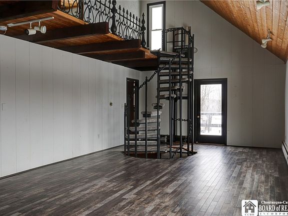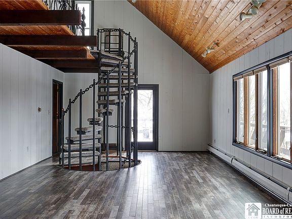 Want to get out of the city yet be close to amenities? This is a comfortable & contemporary loft home in the heart of the Chautauqua County NY countryside. The main floor has an open concept that flows perfectly for entertaining & new flooring was installed. 2nd floor bathroom next to master bedroom has been remodeled, there's a finished walk out basement with 1/2 bath for a rec room, office, man cave, in-law suite & more. Maintenance room to include additional storage. The landscape is perfect for the nature lover, and sellers enhanced the land to include a man-made, spring fed Pond that sets just beneath a beautiful overlook. The barn initially built for a horse(s), previous owners rented an acre of land behind barn from neighbor (now new ownership), it also allows for natural farming and there's a shed with electric, outside above the pond. Close to neighboring cities to include Mayville, Westfield, Jamestown, Dunkirk and Fredonia. Easy accesses to both Chautauqua Lake & Lake Erie - near the best Wineries, Chautauqua Rail to Trails & more.