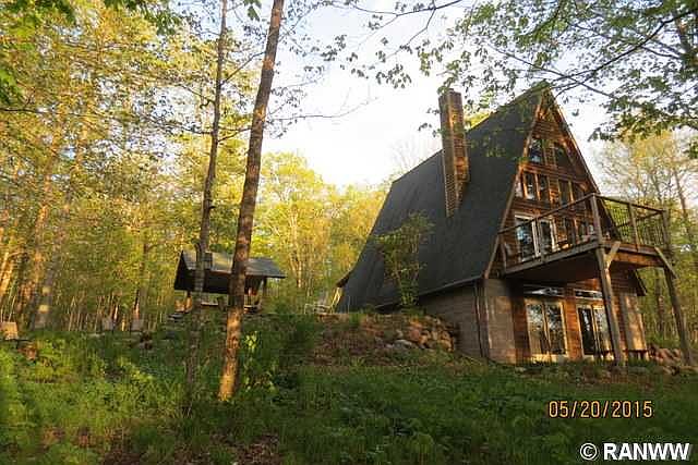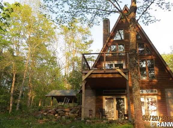Magnificent cedar chalet on the Chippewa River with 4.83 acres and 230' of pristine shoreline for the utmost privacy. Breathtaking views include an active eagle's nest above the river. There are 2 BRs & a loft, 28 x 36 garage, 3-season rm, & an adorable outdoor cabana. The sellers have been producing maple syrup, up to 25 gallons, and will include supplies. Great trails run throughout the wooded property.