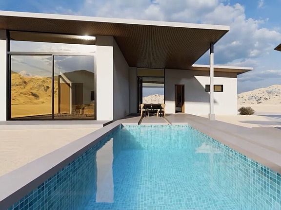 King of The Hill! Rare opportunity to own a stunning 5-acre parcel bordering Joshua Tree National Park with sweeping 360 views. Sale includes approved plans for a 1,550 SF modern home, 700 SF ADU, and a luxurious pool with kids' pool. Well installed 2022. Nestled in the serene desert landscape, this property offers breathtaking mountain views and privacy, perfect for a personal retreat or vacation rental. With permits ready, you can begin building immediately. Enjoy seamless indoor-outdoor living with designs that maximize the natural beauty of the surroundings. Minutes from Yucca Valley amenities and Pioneertown, this is the ultimate desert living experience. Don't miss your chance to create your dream oasis adjacent to Joshua Tree. Plans available upon request.