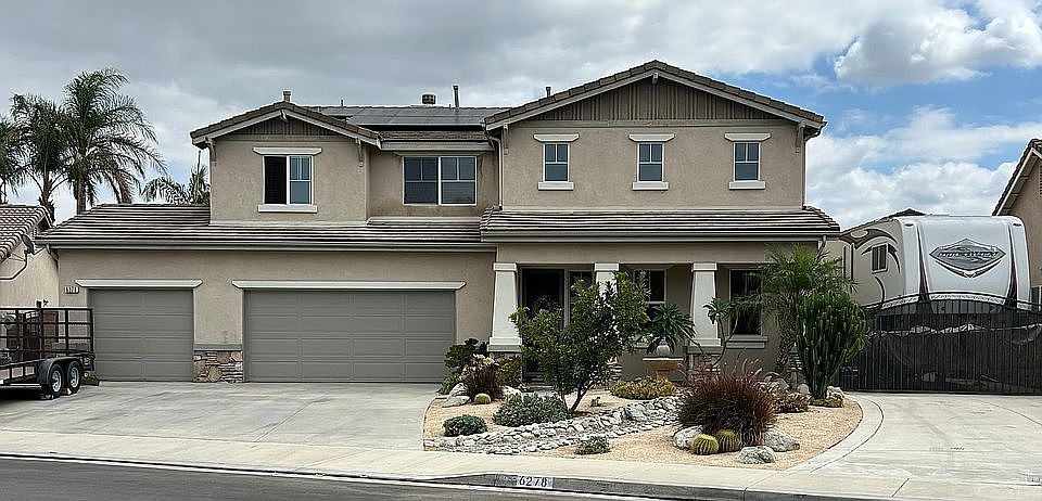 Rare find! This home truly checks all the boxes! Located at the end of the cul-de-sac with extra large RV parking 14–20 feet wide by 47 feet long. Beautiful relaxing, pool and spa with large aluminum patio cover. Built in barbecue with sink and separate fire pit. Great entertaining space! Low maintenance front yard is drought resistant with a dry rock river. Step into your new home with an extra large kitchen with the open concept and island. Lots of cabinets! One full bath and bedroom downstairs and separate laundry room upstairs. You’ll find a large bonus room with a double door entry to the main bedroom. Large walk-in closet. Beautiful vanity with separate shower and relaxing tub. This home also has a whole house fan, water softener, and PAID Solar!! Close to many parks, schools and new shopping.