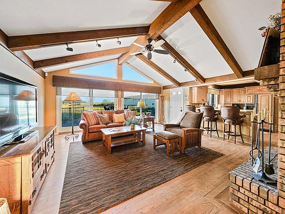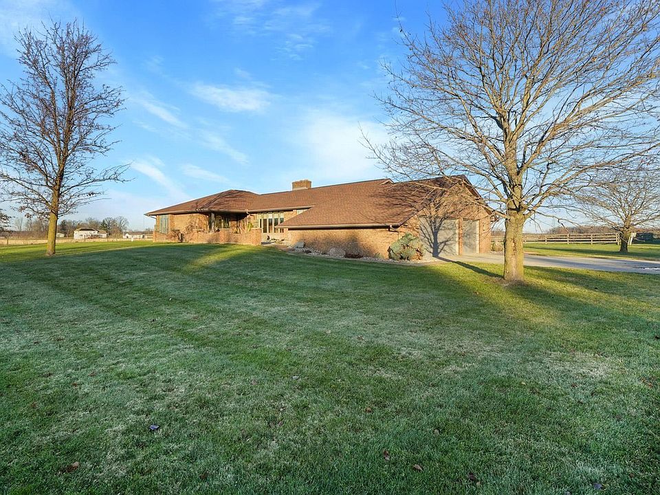 Peaceful country living at its best! Rare opportunity for you to enjoy a custom built ranch and barn on 22.71 beautiful acres so close to town. All brick exterior, open floor plan between kitchen and family rm, 2 fireplaces, cathedral ceiling & hardwood floors. Comfortable living room & dining room for gatherings w/ friends and family, seating at kitchen peninsula, gas cooktop, first floor laundry, cedar lined closet for your wardrobe extras. Terrific views all around and you will love both the sunrises and sunsets on this property. Sliding doors open to an inviting composite deck for entertaining out back with an ideal location for a pool as the septic is off to the side. Quality 60'x200' barn by FBI w/ seven custom made horse stalls, water & electric, large riding arena, ample hay loft, 16' doors and ceilings to accommodate tall machinery, partial concrete floor. Full basement w/ second entrance through the oversized, attached 3 car garage. Land is divided into pastures and tillable ground w/ no wetland. PHM schools. 2023 crop is reserved.