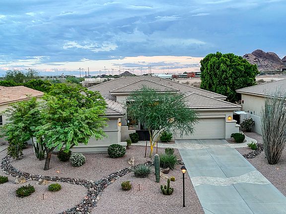 Welcome home to Papago Buttes - a hidden enclave of semi-custom homes nestled just minutes from Old Town Scottsdale & Arcadia! Luxury meets serenity with this fully upgraded, single-level home adorning designer finishes and new wood flooring throughout. A thoughtful split floor plan features spacious bedrooms, soaring ceilings, and abundant natural light, creating an inviting flow that reflects meticulous pride of ownership. Gourmet kitchen impresses with Wolf appliances, granite counters, and a custom backsplash, while the sound-proofed 4th bedroom doubles as a home theater, studio, or game room. Outside, enjoy the perfect entertainer's retreat with a tranquil waterfall, built-in BBQ, and gas fire pit—all set against the backdrop of ultimate privacy backing the preserve and... unobstructed views of The Buttes! Recent upgrades include a brand-new roof, two new Trane AC units, tankless gas water heater, and Newer Tesla solar panels and inverters! This is truly a forever home blending modern comfort, functionality, and unmatched desert beauty.