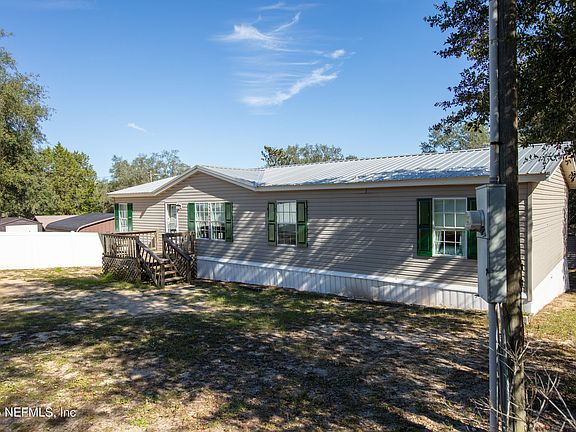 Enjoy the lake life in this well maintained home located minutes from downtown Keystone Heights! Paved road frontage, large deck overlooking the lake, two living rooms, large kitchen island with eat at counter as well as dining room. Stove replaced in 2023, well pump was replaced approximately 2022, HVAC replaced in 2020 and metal roof in 2018. Primary bath has updated vanities and sinks. Two sheds will convey. Refrigerator is being sold as is and not warranted. Plenty of space in the second living room to add walls if a fourth bedroom or office is desired. Spacious yard and waterfront on Little Lake Geneva!
