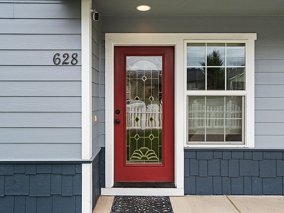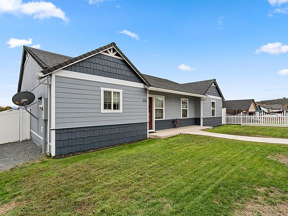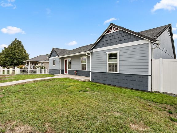 Beautifully maintained custom contemporary home in highly sought-after Barton Hills Estates, Eagle Point! Features include vaulted ceilings, recessed lighting, ceiling fans, and a modern two-tone interior. The open floor plan highlights an island kitchen with pantry and custom Hickory cabinetry, plus an oversized laundry room with extra storage. The spacious primary suite offers dual walk-in closets, double sinks, and a walk-in shower. Enjoy evenings on the covered back patio with sunset views and paddle fan. The finished two-car garage is accessed from the alley, with a standalone storage shed for garden tools. Well-kept yard, quality finishes, and thoughtful design throughout make this home a must-see!