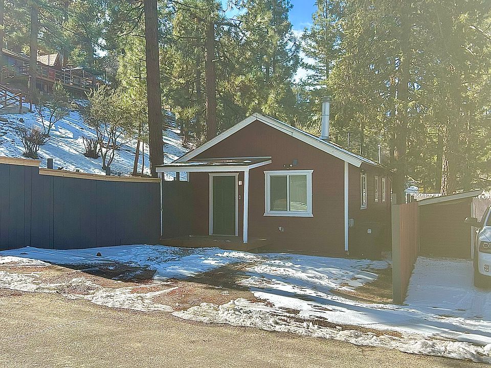 This 1 bedroom 1 bath home is for rent in Big Bear. The home has been recently renovated and will be available for lease on November 1, 2025. The home is located in a residential, very quiet neighborhood, on a quiet culdesac. The house will be open for scheduled viewings on October 10, 2025. The home has a warm open concept, a wood burning fireplace, rear & front patio/porch areas, optional in home washer and dryer hook up, and a fully fenced yard ideal for pets. Pets are ok. Terms are flexible and negotiable. The home currently tenant occupied, but will still be available for scheduled viewings.