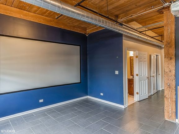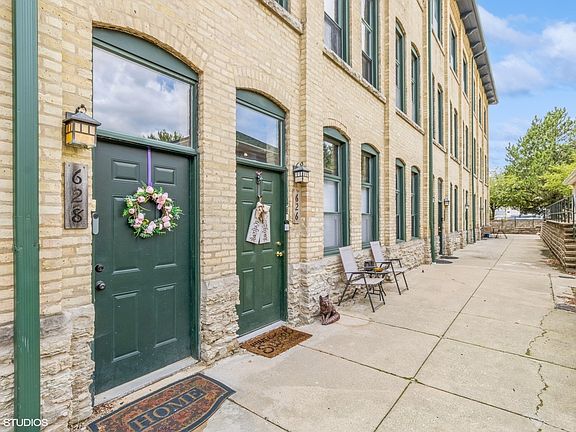 HISTORIC SHOE FACTORY LOFTS, 3 STORY BEAUTY!!! Each floor features GRAND 11-14' ceilings, exposed wood beams, brick & original hardwood floors. 1st floor features porcelain tile. 3rd bedroom (16X13) on main level offers your own private patio and full bathroom, great guest or in law setup. The family room features a movie theater with screen and projector (theater equipment is included). On the 2nd floor you'll find the living room, formal dining room and kitchen with a breakfast bar and recessed lighting. The kitchen features cherry cabinets, granite counters and stainless steel appliances (new refrigerator 2024, dishwasher and garbage disposal new 2022). 3rd floor level has the other 2 bedrooms and 2nd full bath. Master bedroom has walk in closet and spiral staircase leading to the 4th floor walk in closet/storage (12X9) or could be a office, craft room, kid space, etc. Deeded garage and 2 additional assigned parking spaces. Water is included in the monthly hoa. Excellent location minutes from I-90, shopping, Metra and downtown Elgin.