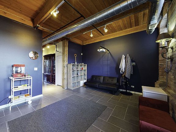 HISTORIC SHOE FACTORY LOFTS 3 STORY BEAUTY!!! Each floor features GRAND 11-14' ceilings, exposed wood beams and brick. 1st floor features porcelain tile. 3rd bedroom (16X13) accessible to your own private patio and full bathroom with new shower, faucet and new front door. The family room features a movie theater. The theater equipment is included. 1ST floor permits to have a "home business". Check with local jurisdiction for work live allowed business use of townhome. Beautiful hardwood floors throughout the 2nd floor includes your living room, formal dining room and kitchen with a breakfast bar and recessed lighting. The kitchen features cherry cabinets, granite counters and stainless steel appliances. Dishwasher and garbage disposal are new. 3rd floor level has 2nd and 3rd bedrooms (16X13) with hardwood flooring and 2nd full bath.Master bedroom has walk in closet and spiral staircase leading to the 4th floor walk in closet/storage (12X9). Ceiling fans in all 3 bedrooms. Deeded garage and 2 additional assigned parking spaces. Water is included in the monthly assessment. Excellent location minutes from I-90, shopping, Metra and downtown Elgin. CLICK on the PLAY BUTTON (triangle) in the bottom left corner of the MATTERPORT TOUR TO WATCH THE FLY=THROUGH HIGHLIGHT REEL (VIDEO)!!! Contact me today for a private showing.