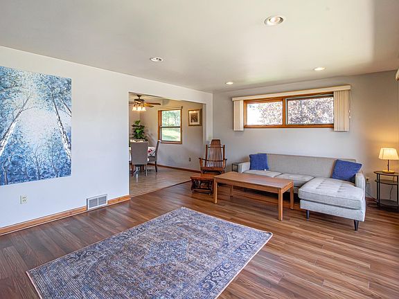 Gorgeous 3 Bedroom/2 Bath home, tuck under garage with a new door and opener. Awesome, 32 x 28 detached, insulated, heated, and plumbed garage, with new door opener. Classic ranch style home, forced air heat, central air conditioning, beautiful wood floors and new laminate floors. Three bedrooms on the main level with full bath and central hallway leading to the open living room, saturated with natural light from the large windows, opens to the dining room and kitchen. Full basement offers: family room, 3/4 bath, laundry and mechanical room, ample storage options, and tuck under garage access. Outside features a generous back yard with split rail fence, new retaining wall and steps in the front, and attractive landscaping with beautiful perenials. Furnishings included. Convenience of in-town living on the edge of town!