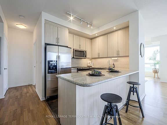 Come for the views alone! This stunning 1480 sq. ft. gem with unobstructed south and west views overlook Coronation Park, The Toronto Yacht Club, Lake Ontario and the Toronto Islands. Accessible to grocery stores, gas stations, parks, highways, restaurants and the Streetcar at your doorstep. Designed for both style and function, this home features generously sized bedrooms complete with custom built-in closet organizers. The den, large enough for a bedroom has French doors, built in cabinetry and the most spectacular work from home views. The full size kitchen is perfect for chefs and entertainers alike, offering extended cabinetry, granite countertops, a breakfast bar, and full-size appliances and 2 oversized storage lockers! Whether you're hosting friends or enjoying quiet evenings by the lake, this property delivers a lifestyle as impressive as the views.