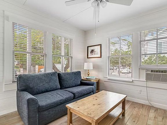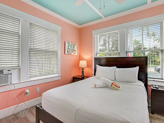 Ease into the pleasures of a tropical vacation with this two-bedroom, two-bathroom condo in Key West. With a charming atmosphere, entertainment, and two private parking spaces to save you any headaches, you'll speak nothing but praise during your stay in paradise! Located in the downstairs of a historic building just one block from the excitement of Duval Street, you'll be close to all the action while having a quiet place to retire to at the end of a long day. Visit the Hemingway Home or Mallory Square. Sail into the sunset, and dine at as many delicious eateries as you can to sample the local flavors! Rest up between excursions in your comfortable, air-conditioned condo, whip up a light snack in the kitchen, and plan upcoming adventures with free WiFi. If you're looking to enjoy a night in, you can put a movie on the TV. Your vacation in paradise just became a reality with this charming condo - book today!