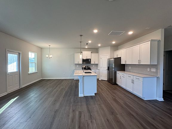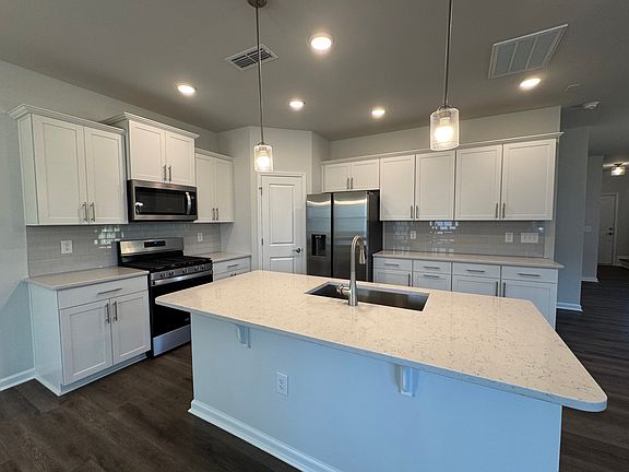 A brand new modern 4-bedroom & 3-bathroom single family house in highly desirable Exchange at 401 community. The house features a guest suite on the 1st floor, open kitchen, dining & family room. Kitchen features SS appliances, granite counters. Luxury vinyl plankthroughout the 1st floor. Heading upstairs, where you will find a loft and additional 3 bedrooms. The oversized primary suite features a private luxury shower and walk-in closet. Each additional bedroom is spacious and feature ample closet space. High speed internet, cable TV and ring doorbell are included in your rent. Great community amenities including community swimming pool, clubhouse, 24-hour fitness center, dog park, playground, and pocket parks. 2 miles walking trail in the community. Minutes to downtown Raleigh,Costco and other shopping, dining, I-540, NC-401 and much more. New blinds will be installed. Washer, dryer, and fridge provided.